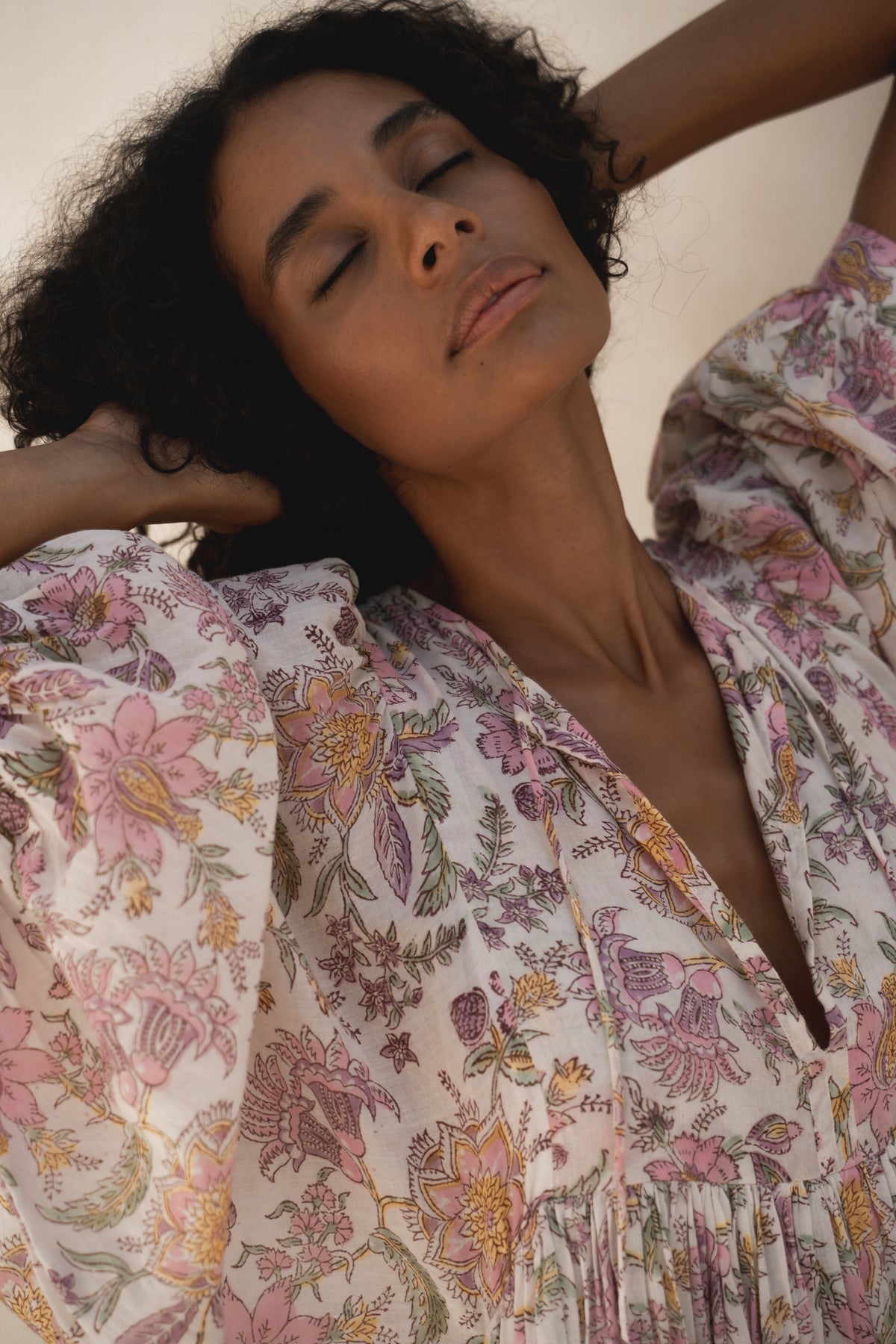 Fuchsia Bloom is an enchanting illustration of the ancient art of hand-block printing. An eloquent display of flowers and leaves intertwine in this traditional design, creating an effervescent feel through its delicately hand-placed floral garden. Crafted from soft, lightweight cotton voile, our Kyra Maxi captures the very essence of femininity with its romantic billowed sleeves and optional front-tie detailing. The addition of pockets compliments this maternity and breast-feeding friendly design, boasting effortless everyday wear and timeless style.